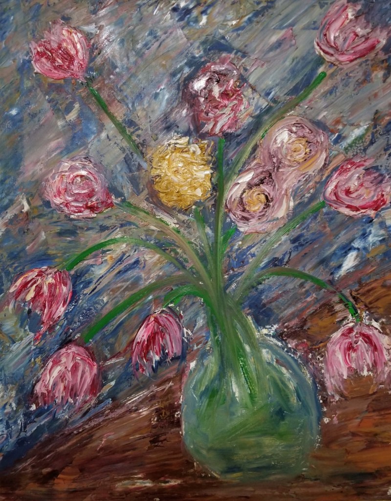 Audrey 24×36 inches Oil on CanvasJoe 14×14 inches Oil on Canvas Yellow Tulips with a View 24×36 inches Oil on Canvas soldYellow Tulips on Table 20×30 inches Oil on Canvas soldFace #1 12×24 Oil on CanvasFace #2 12×24 inches Oil on CanvasBedroom Series #1 24×36 inches Oil on Canvas soldBedroom Series #2 24×36 inches Oil on Canvas Sold