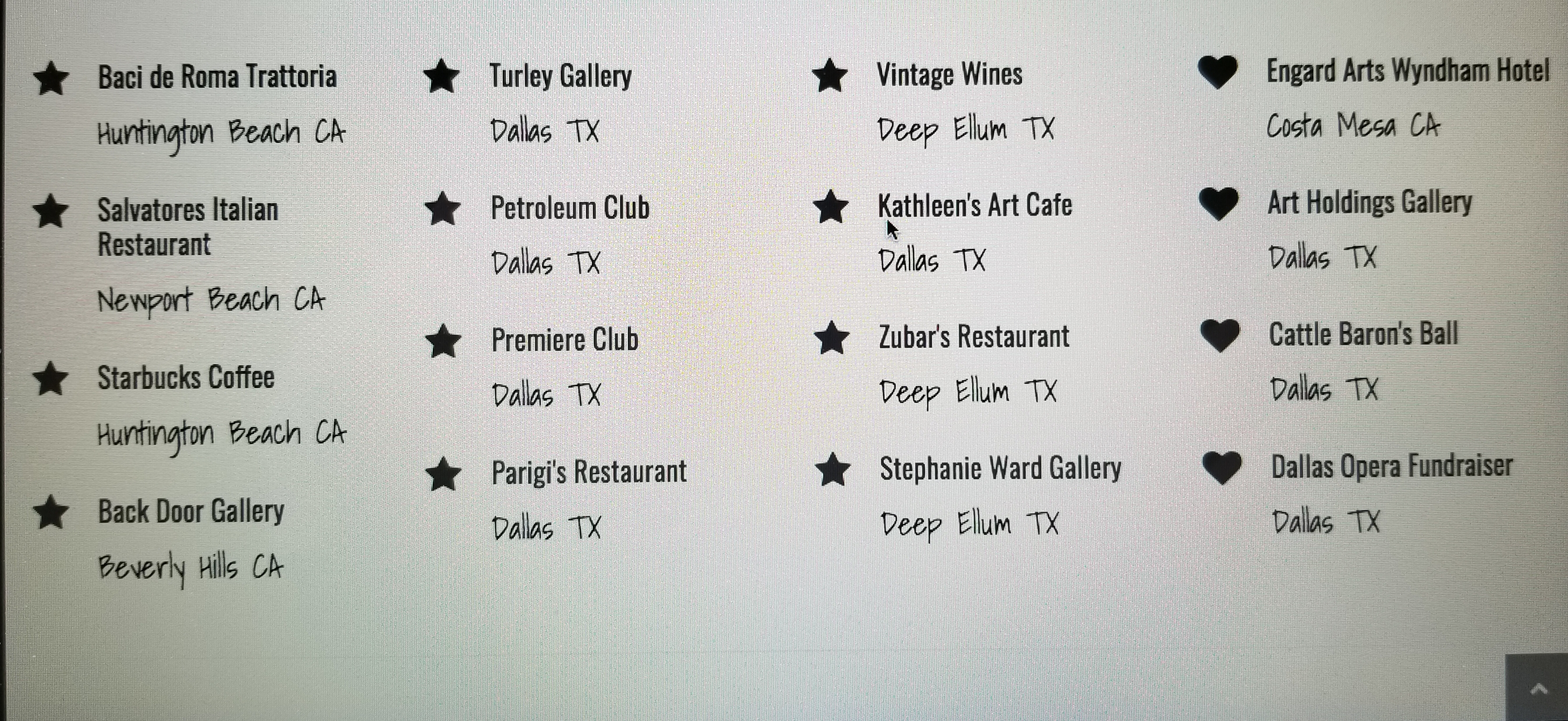 5.0 Showings Dallas Texas Ponderay Arts Council placement at Ivano’s Italian Restaurant until March 2021 Sandpoint Idaho Ivano’s Restaurant Beverly Hills CA Newport Beach CA Share this: Click to share on X (Opens in new window) X Click to share on Facebook (Opens in new window) Facebook Like Loading...